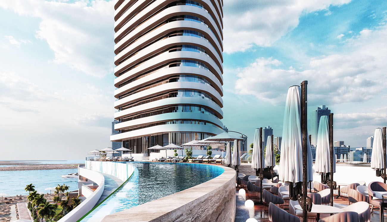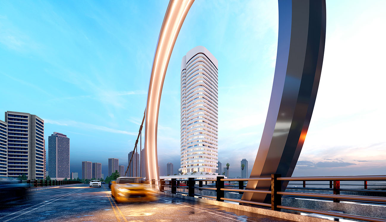 Luxury Mixed Used Commercial and Residential Apartment Tower. The Ground floor consists of retail and residential apartments. The Podium base is two floors, the first-floor podium base consists of retail and apartments and the second-floor podium consist of residential apartments.
