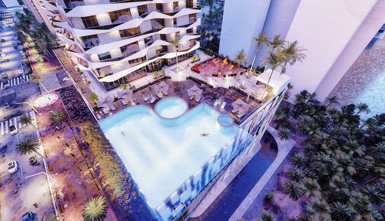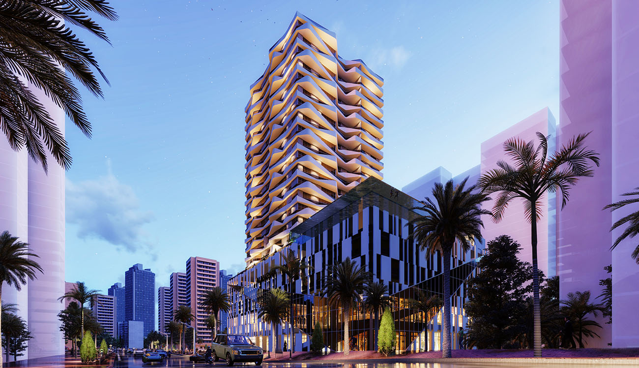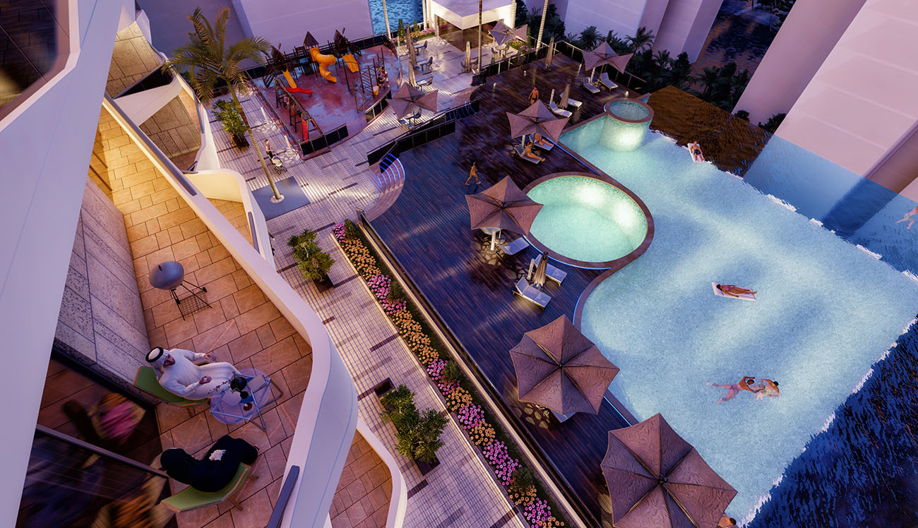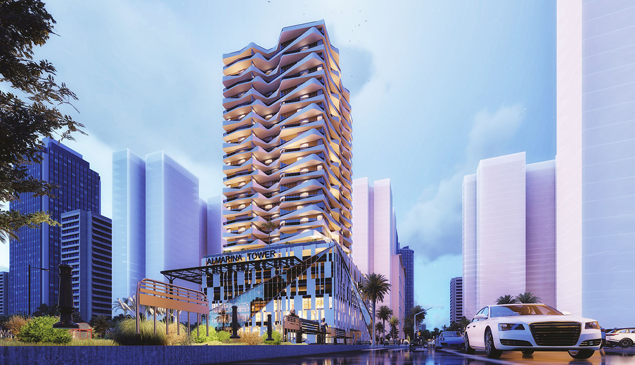Luxury residential tower located at Lusail Marina, the tower consists of twenty-four floors (1B+G+M+3P+18F), the total number of apartments is 149 with different types from 1-Bedroom to 3-Bedrooms.