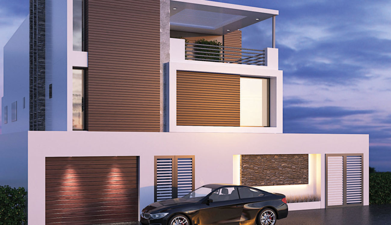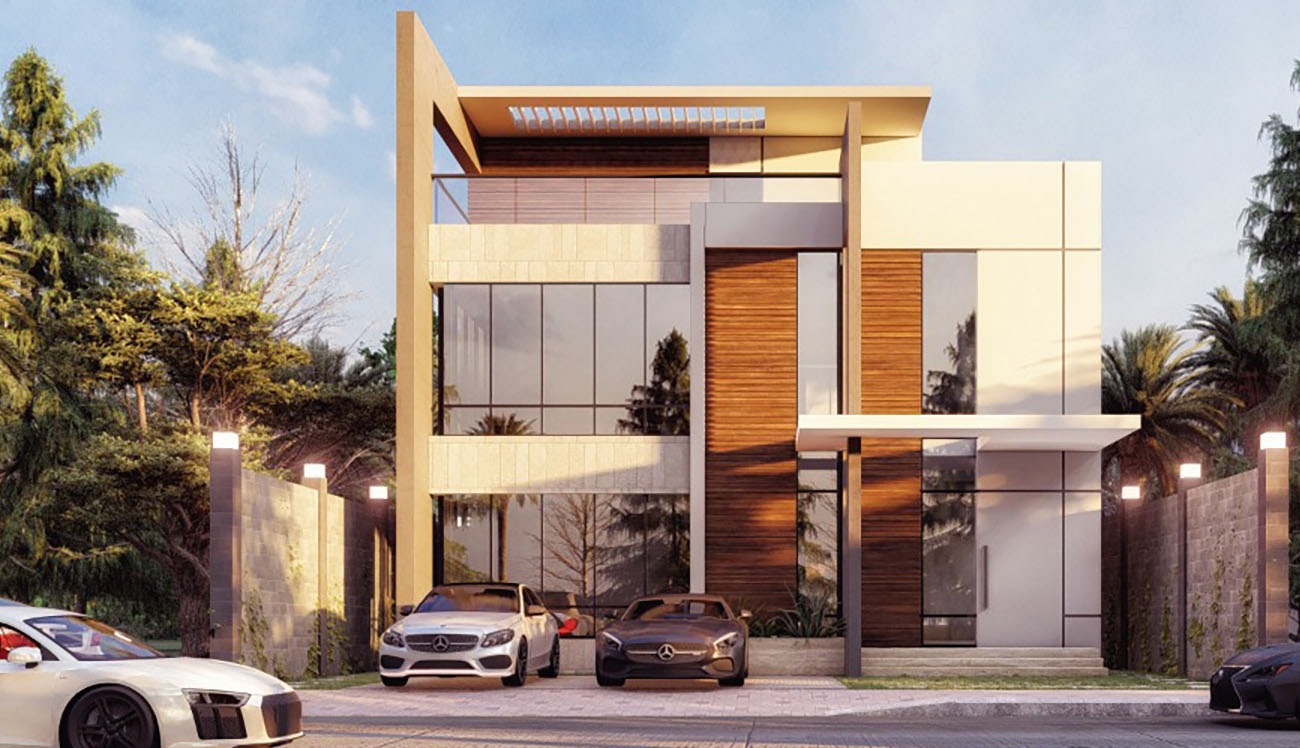 Each villa consists of three floors (G+1+PH), it includes four master bedrooms, maid room and sitting areas, also it is fully equipped with lift, swimming pool and large garden .
