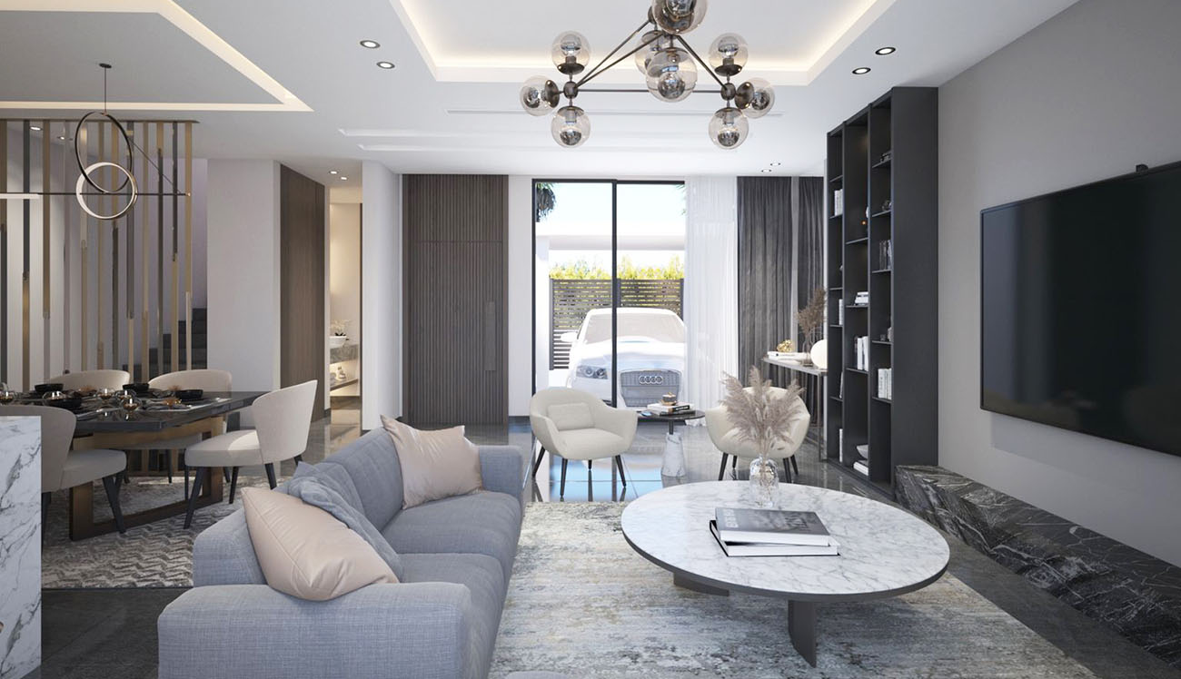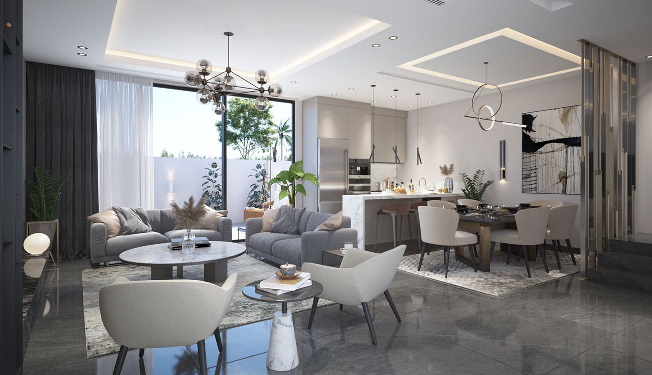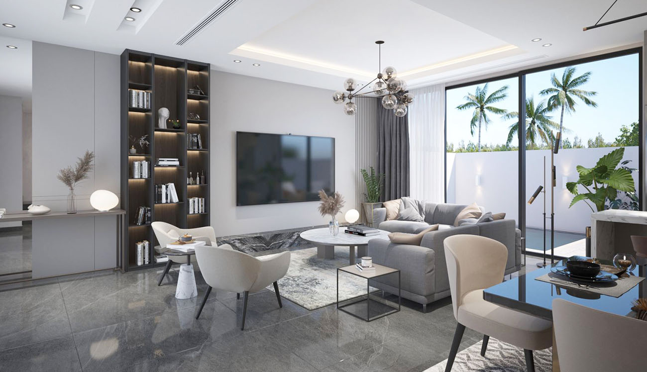 As standard, Living, Dining, and Kitchen at the Ground floor level with Maid's room and a Powder room for Guests. Bedrooms at the superfood has its own Balcony and Lift is provided that will reach up to second floor level. A swimming pool is located at the back of each Villas with a small garden. Duct Split AC is provided for each Villas, and it will be assessed as 2 Star GSAS rating.